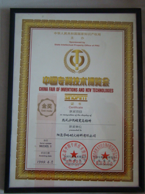 熱風(fēng)爐用低蠕變高鋁磚、高荷軟高鋁磚獲省科技進(jìn)步二等獎,微膨脹高鋁磚列入火炬計劃項目,炭素焙燒爐用特種高鋁磚已批準(zhǔn)國家專利